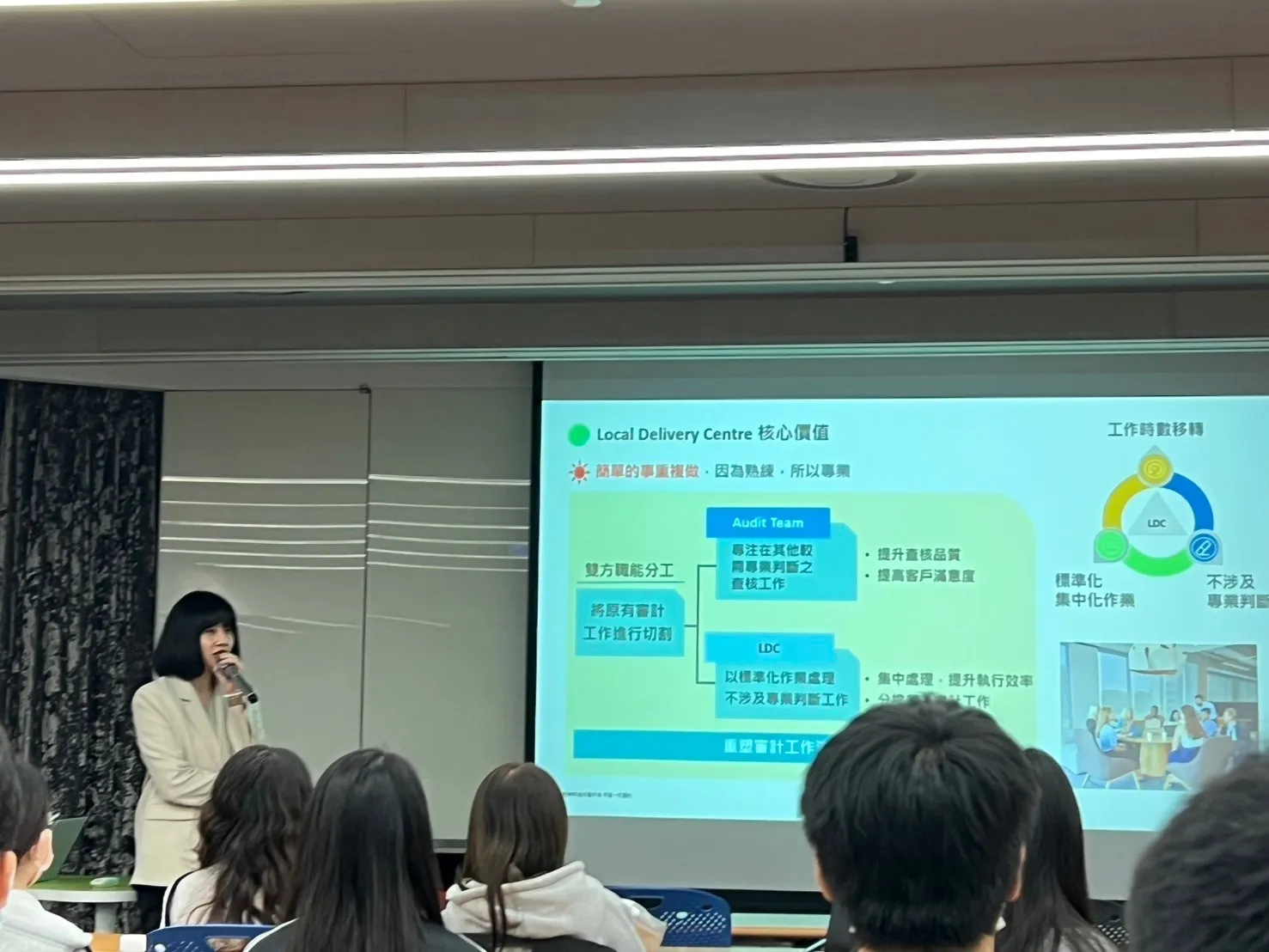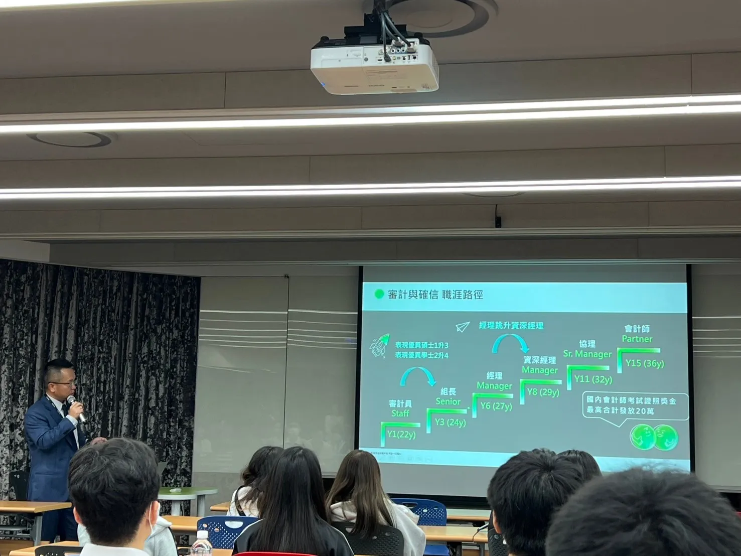 答:我覺得這門課的內容安排很多元,有小專題實作、系友分享工作經驗,還有業界演講跟產業參訪,讓我們不只是在上課,而是真的了解會計人在職場上的樣子。